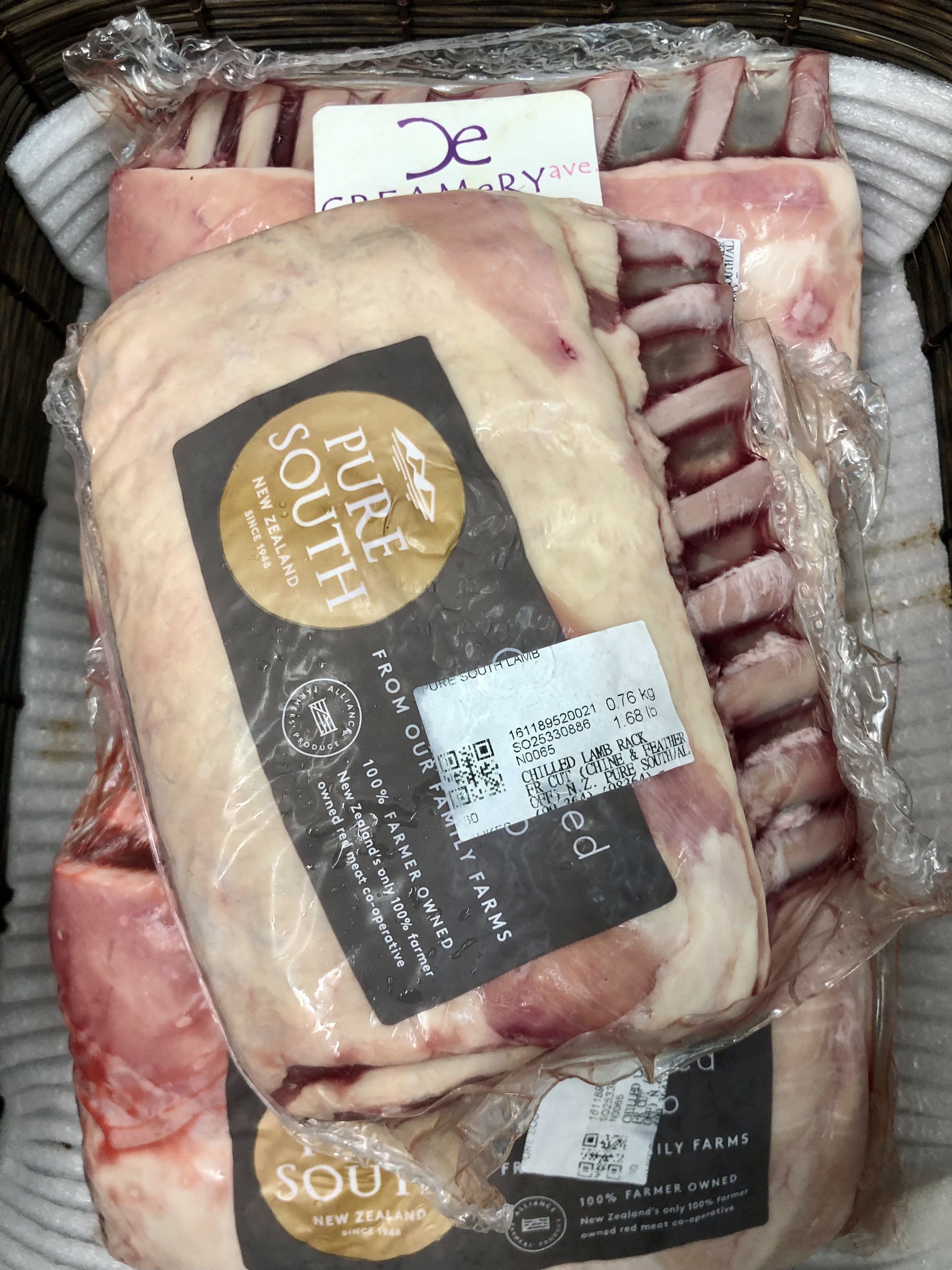 新西蘭法式羊鞍架 (8支骨) New Zealand Pure South Lamb Rack French Cut $430/kg 原件±745g-790g/件