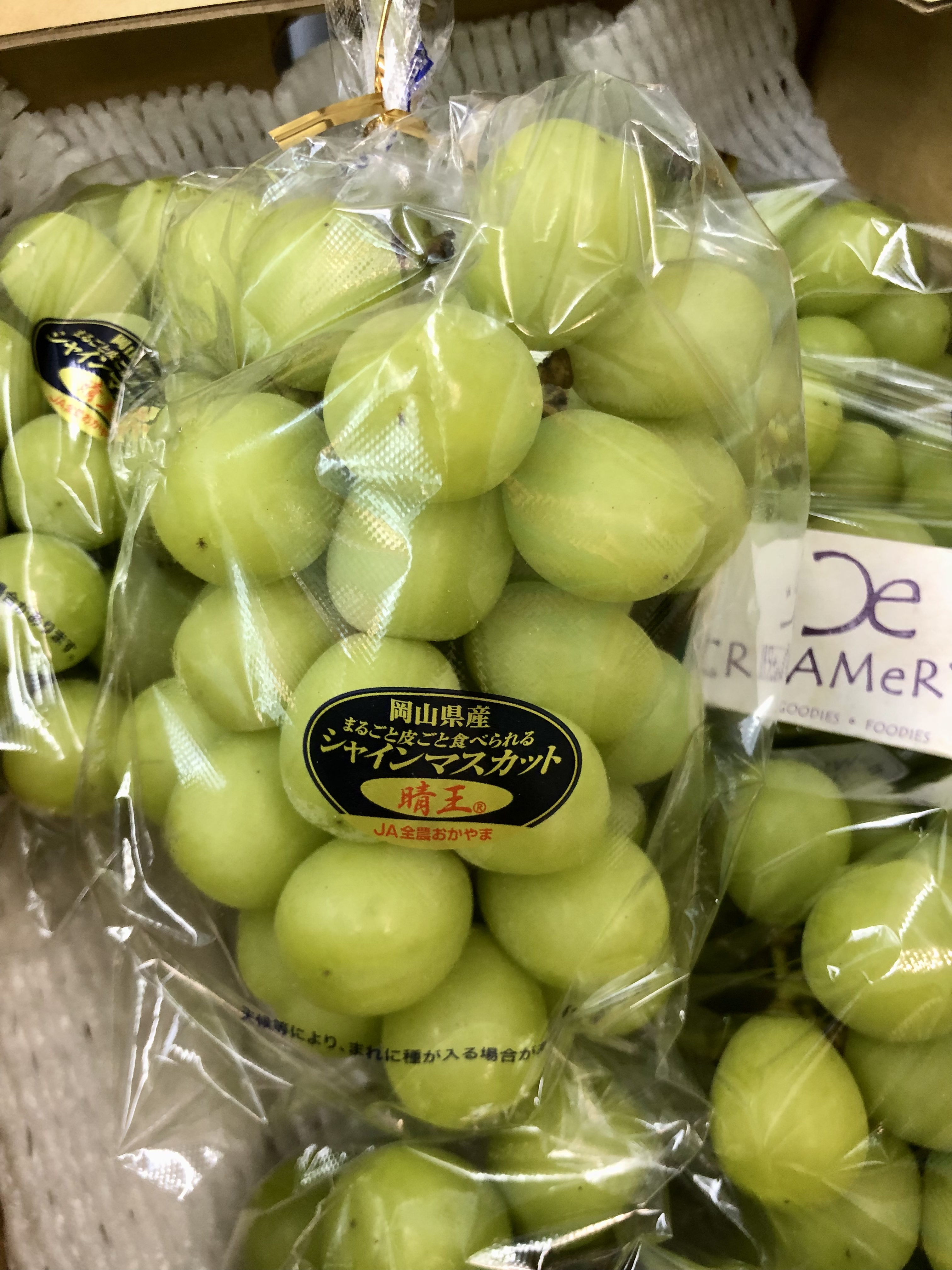 【晴王】又名麝香葡萄,以果肉大粒、無核、保質期長並帶有獨特的麝香味而聞名。當中又以岡山出產的最著名,味道香甜,故此只有岡山出產的才能冠以「 晴王 」之名。