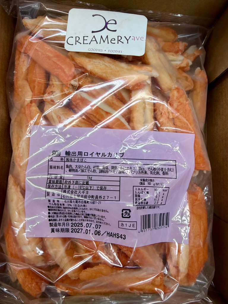 日本原裝進口 Sugiyo仿皇帝蟹棒肉 1kg 500g 日本原裝進口仿皇帝蟹棒肉,用頂級魚肉製成。肉質帶有淡淡的甜味,味道鮮甜和綿密緊實的口感。可放麵上加上熱湯食用,可打邊爐,蟹柳壽司,蟹柳青瓜沙律小食。 保存方法:-18 ℃冷藏