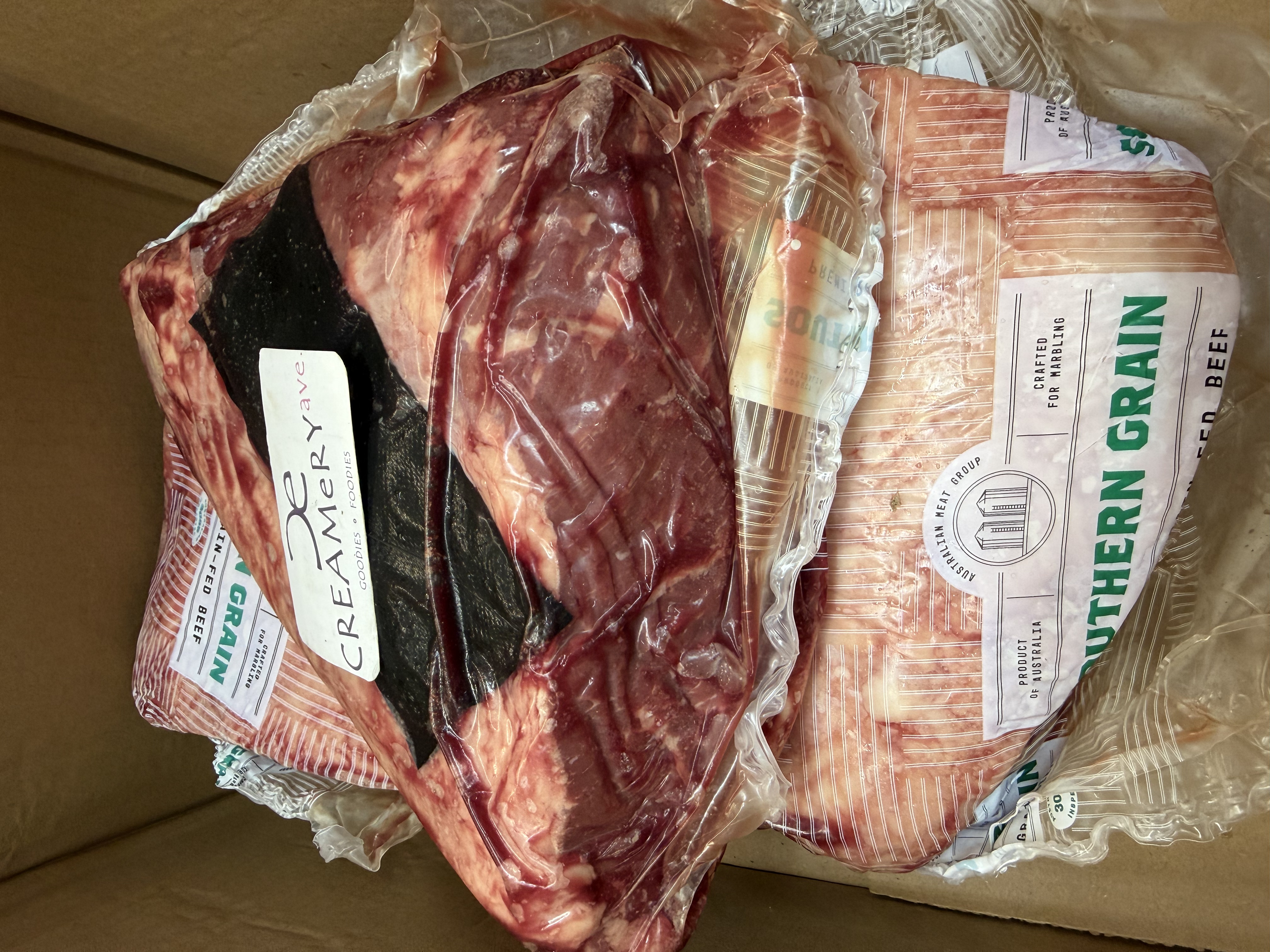 澳洲黑安格斯SOUTHERN GRAIN 穀飼 牛臀肉蓋 (原件) Australia Premium Grain Feed Beef Rump Cap AMG Southern Grain M4+ $292/kg ±1.545kg/pack 牛臀肉蓋這個部位取自牛臀上方,靠近西冷,以其濃郁的肉味和肥而不膩的脂肪而聞名,是傳統巴西烤肉的熱門選擇。 保存方式:冷藏於0-4℃
