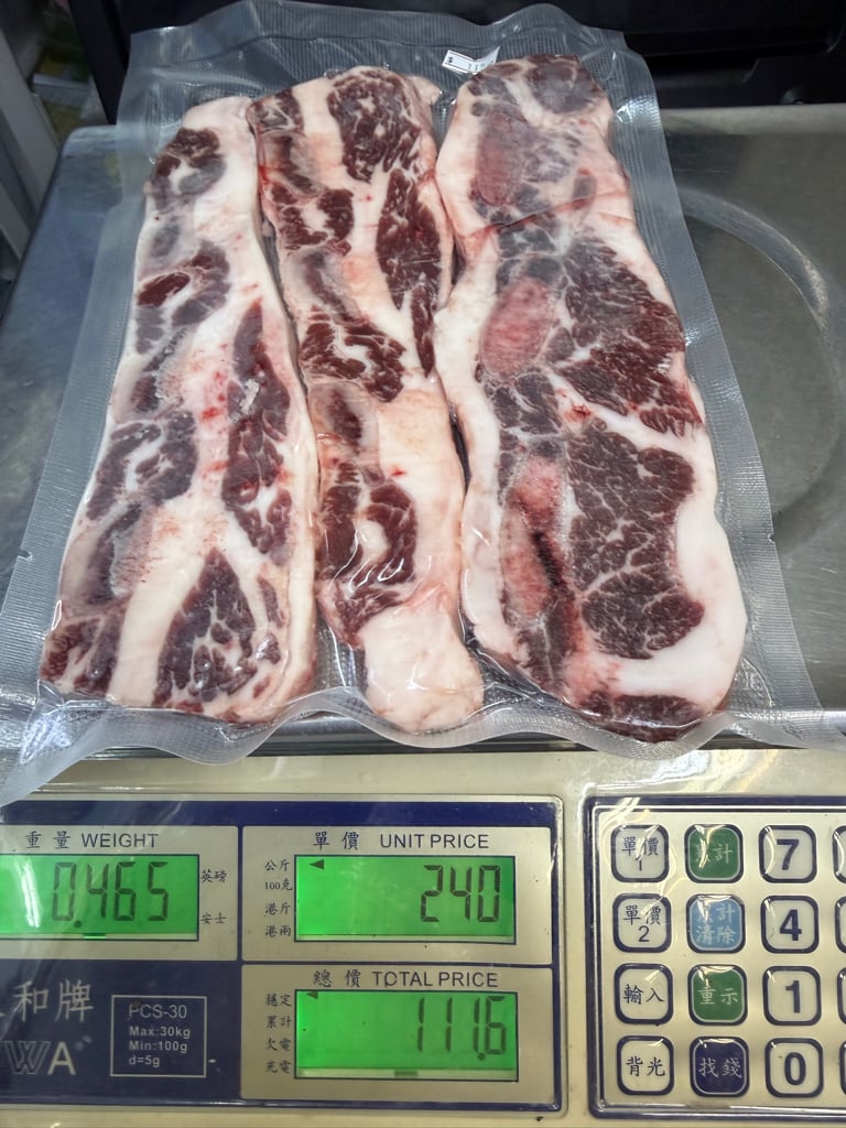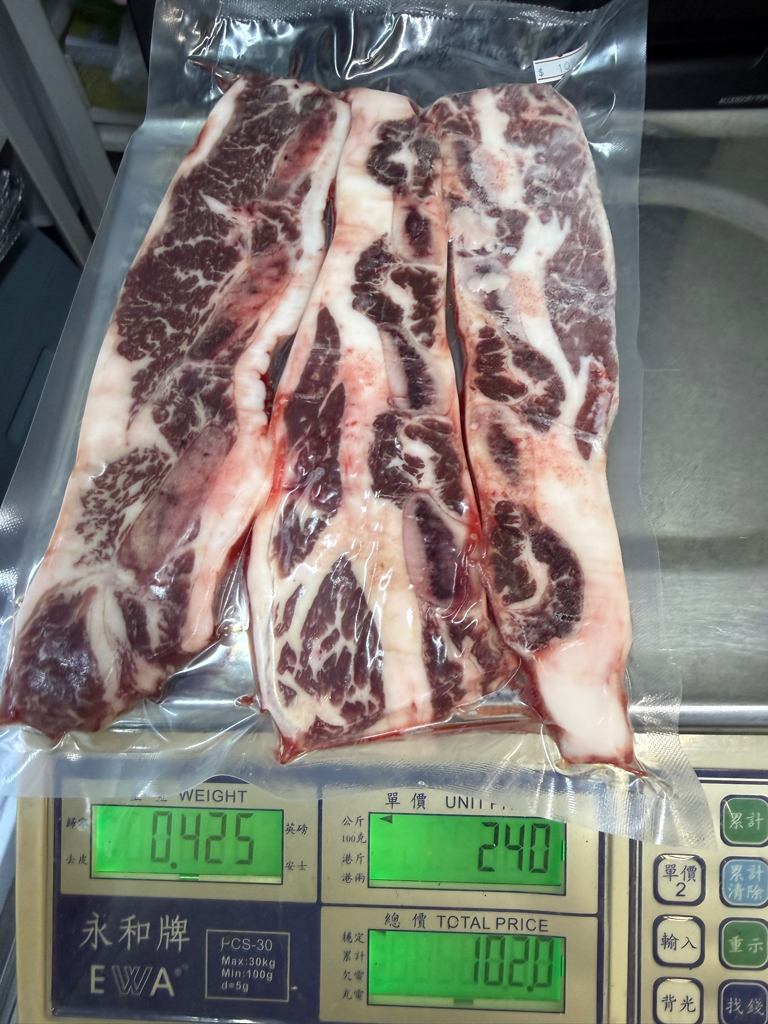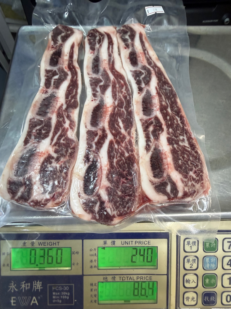 美國IBP Prime 3支牛仔骨 (3片/包)USA Beef IBP Prime Short Rib Bone in $240/kg ±360g-465g/pack ±$86-$112/pack 保存方法:-18 ℃冷藏