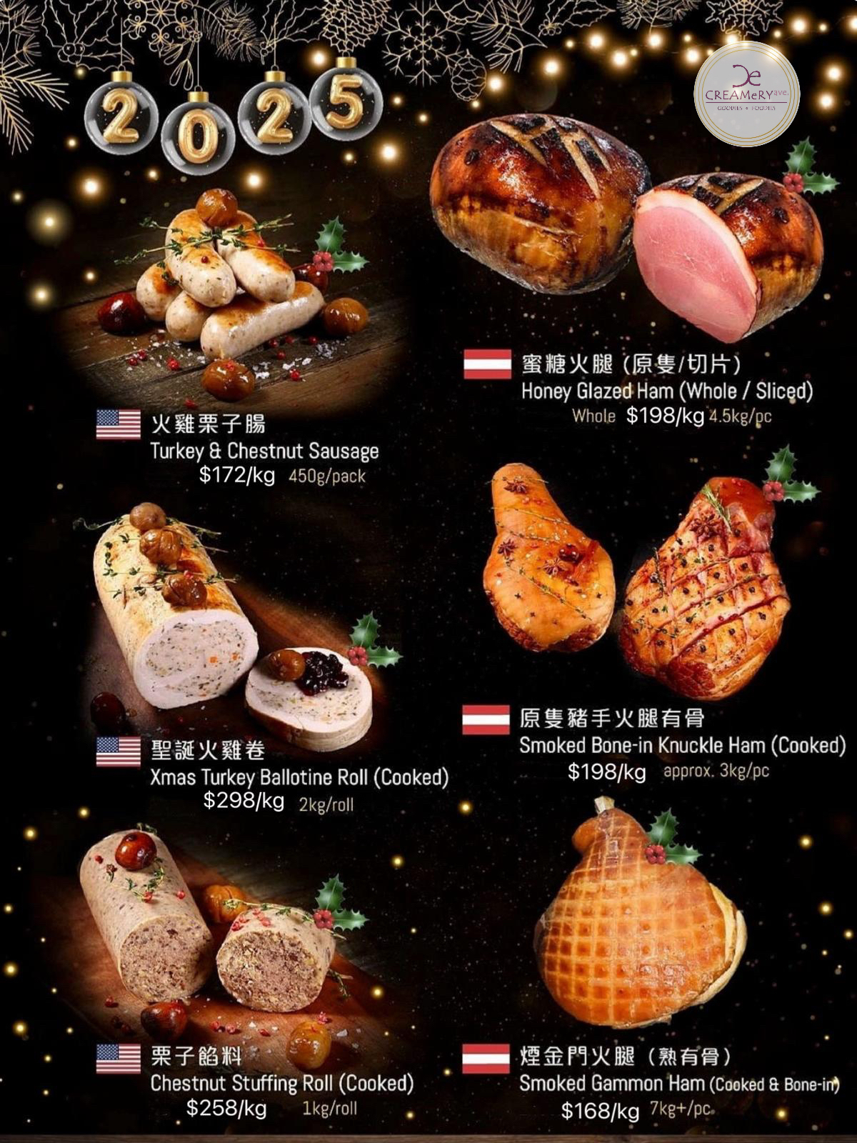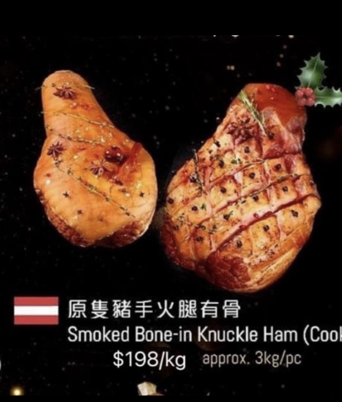 2025聖誕節 - 預訂貨品 慶祝聖誕 !大餐必備🍽 奧地利原隻豬手火腿有骨 原隻 $198/kg ±3kg/pc